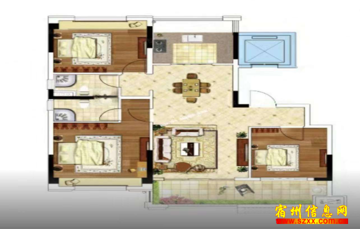汴河小镇三期毛坯128平三室两厅89.5
