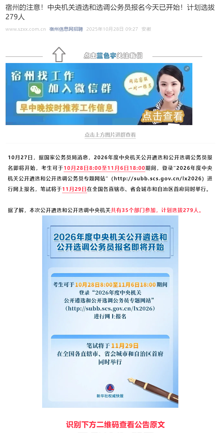 中央机关遴选和选调公务员报名今天已开始!