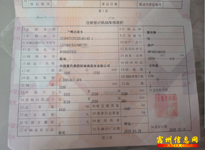 20年重汽豪沃