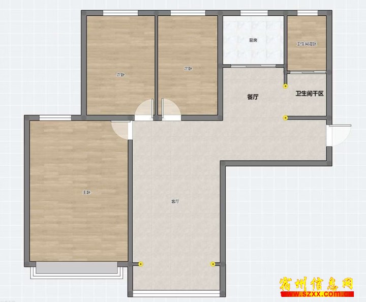 磬云南路小区118平方,最南排毛坯三室32.8万