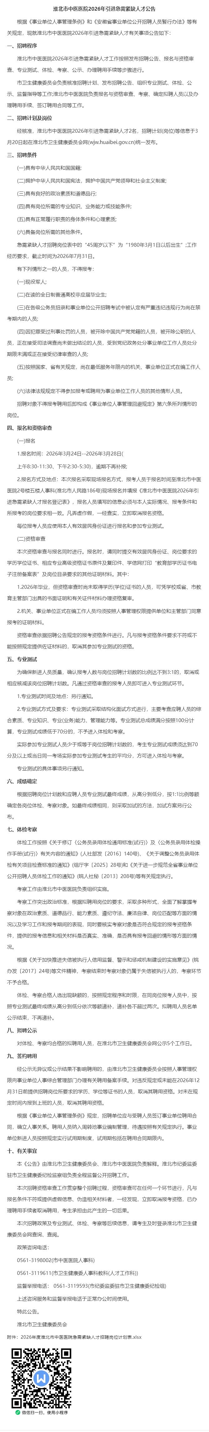 【有编制】淮北市中医医院引进急需紧缺人才