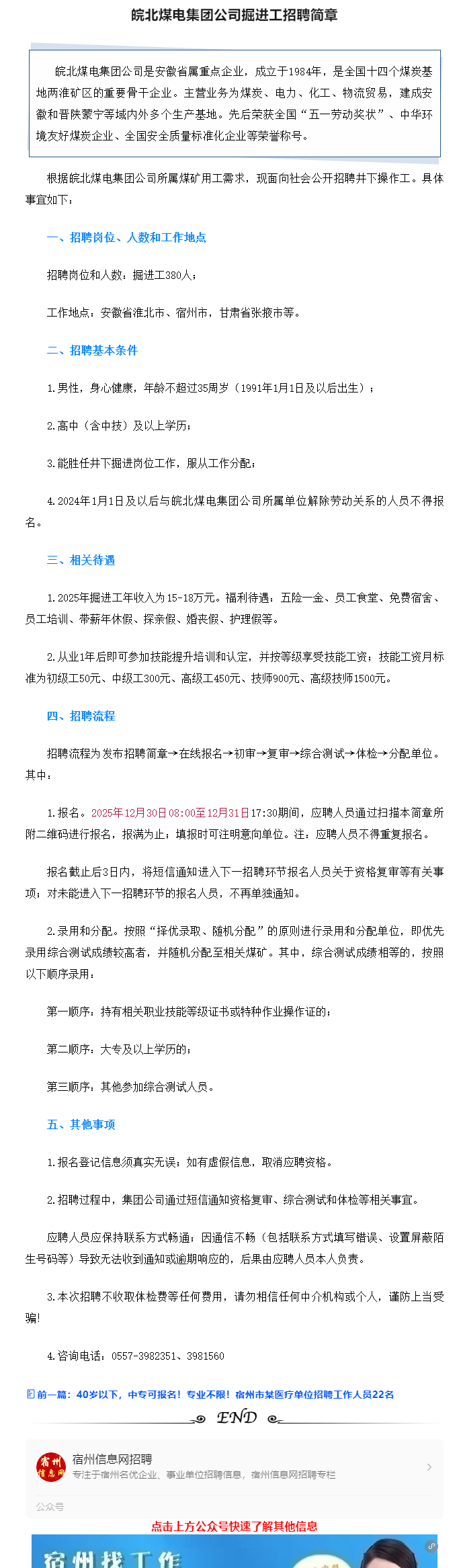 15-18万!五险一金!截止12月31日!皖北煤电招聘