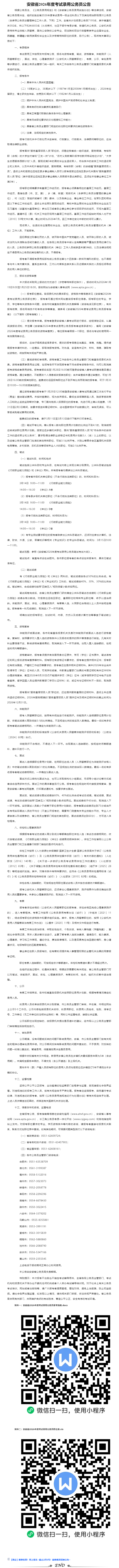 7195人,2026年安徽省考试录用公务员公告