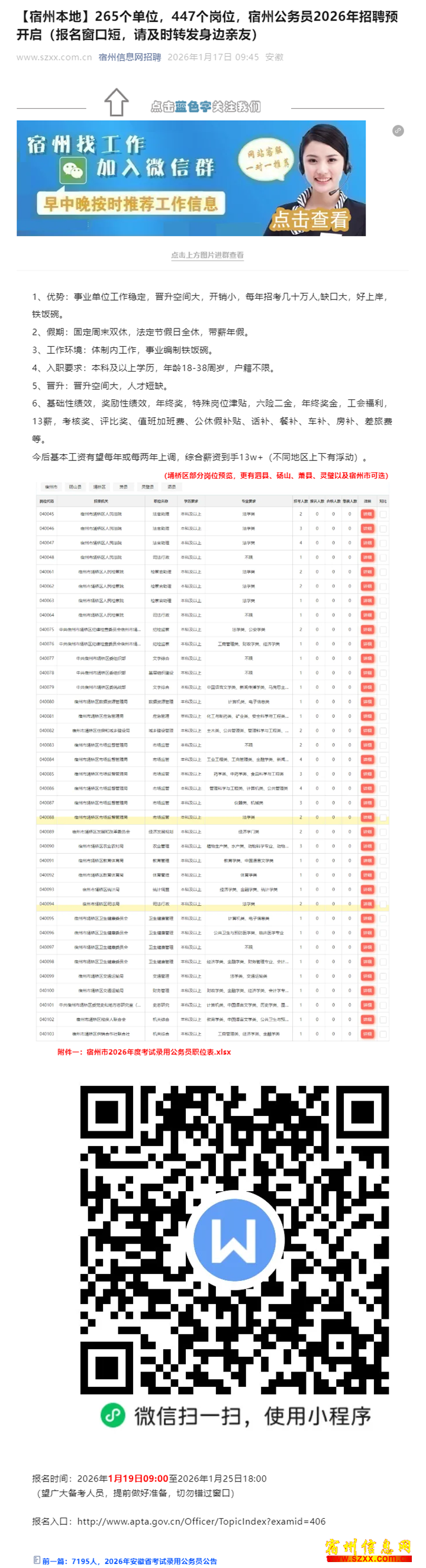 【宿州本地】265个单位,265447个岗位,447宿州公务员20宿州公26年招聘预开26年启(报名窗口短启(报,请及时转发身,请及边亲友)